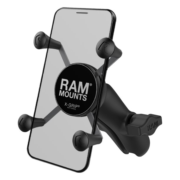 It consists of a 3.3 diameter suction cup twist lock base, standard length double socket arm and diamond base. Ram mount x grip motorcycle cell phone holder universal. With the innovative twist lock suction design, you can now conveniently mount your cell phone, gps unit or ipod within arms reach. Clean and clever four leg design that sports great holding power without hiding your phone behind foam pads and plastic. Spring loaded holder expands and contracts for perfect fit of your device.